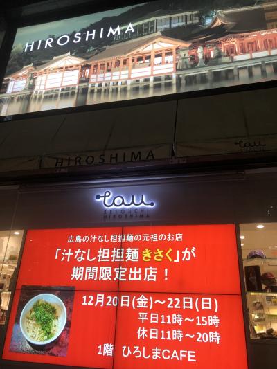 広島の名産品が揃っているアンテナショップです。1階のひろしまCAFEに入っている「汁なし担担麺専門 キング軒」の広島式汁なし担担麺を食べに行ったのが初訪問でした。山椒が効いていて、大好きなんです。