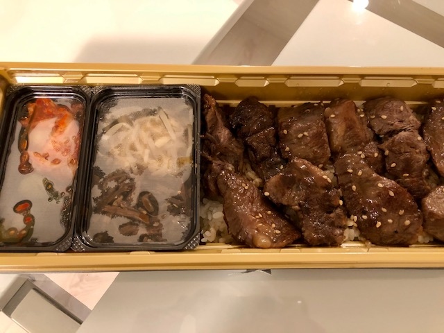 今回は1階のみの利用。デリのコーナーで量り売りのペンネサラダ、焼肉弁当、そして、こだわりの食材などを購入しました。