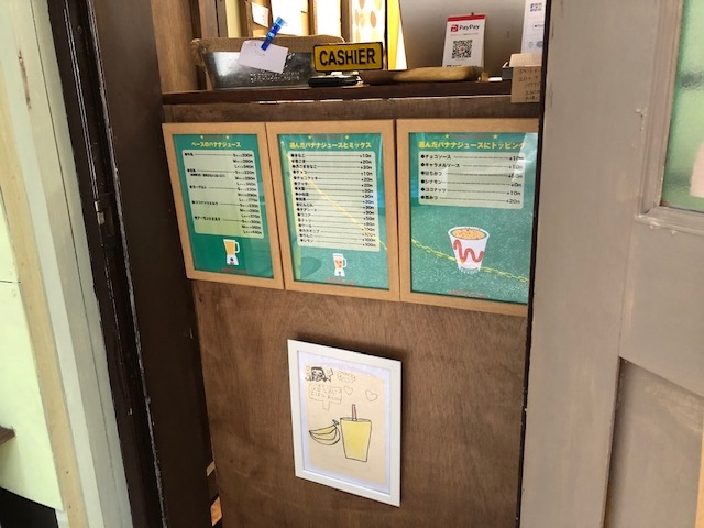 濃厚だけど自然な甘さで、本当に美味しい。口コミを書いている今も飲みたくなっています。牛乳がベースのバナナジュースはSサイズ¥200~。近所の会社の方でしょうか、まとめて購入する姿も見られました。クレジットカードやPayPayも使えます。- 旅行時期
