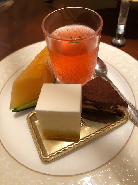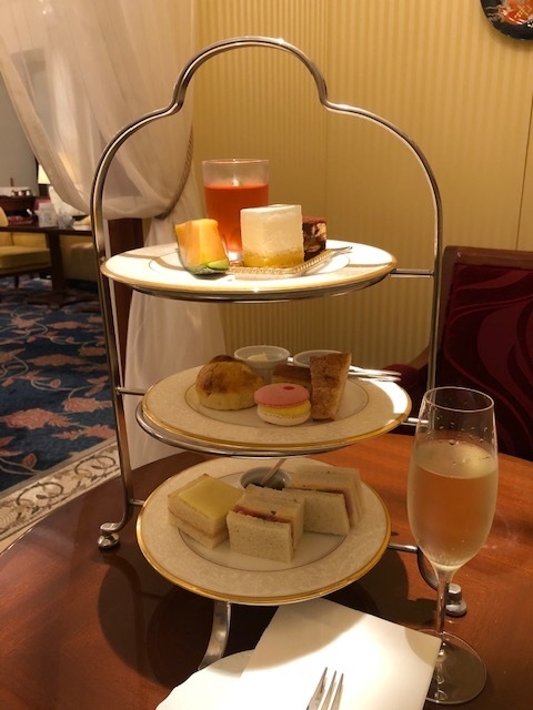 そして!期待以上にアフタヌーンティーが美味しかった♪ セイボリーもほどよく、サンドイッチのひとつはホットサンドでした。いや~、ひとつひとつのフードのレベルが高かったです。ひとつだけ残念だったのが、2種類のケーキが金色のプラスチックのトレイにのっていたのです。(ケーキ屋さんでお持ち帰りのケーキの下に敷かれている様な)