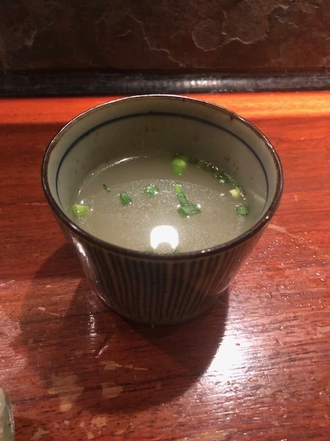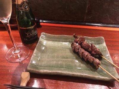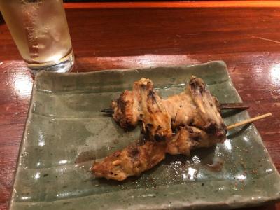 焼鳥はおまかせ5種で¥1690。内訳は砂肝・レバー・ぼんじり・手羽先・ネギマでした。これに鶏スープがつきます。どれも美味しかったのですが、ぼんじりが私の知っているぼんじりよりは軟骨感があって面白かったです。