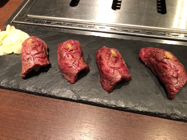 ずっと気になっていた尾崎牛。宮崎県で尾崎さんが生産しているブランド牛です。もともと生のお肉やレアな焼き加減が大好きなのですが、尾崎牛のユッケや握りずしはとても美味しかった~!