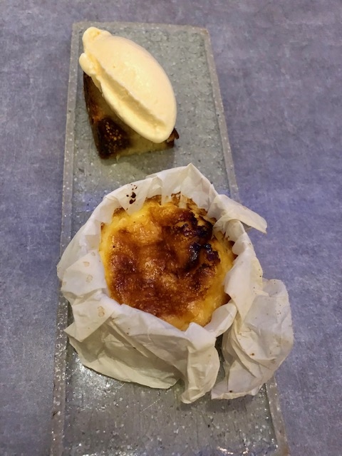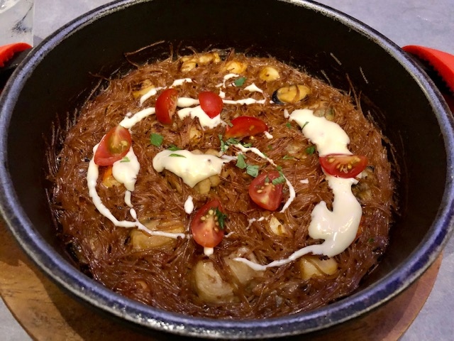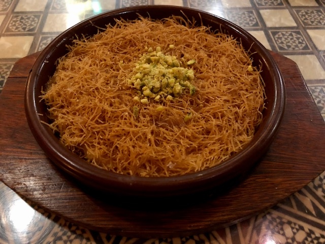 クナーファはあたたかくて甘いのですが、こちらのは甘過ぎず、そして表面の細い麺のような食感が良い、中東のデザートです。