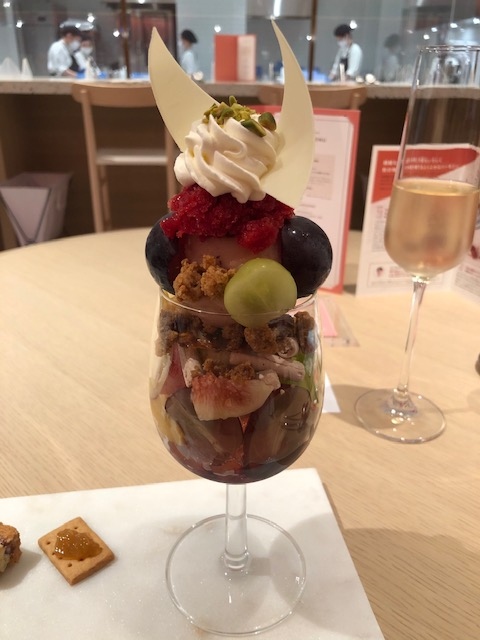 某サイトのプランを予約して行きましたが、グラスシャンパンがついて¥2178ととってもお得でした。旬のフルーツを使ったパフェは美しい!葡萄が本当に美味しくて、大満足でした。最近食べたパフェの中では、お味も食感もナンバーワンです。- 旅行時期