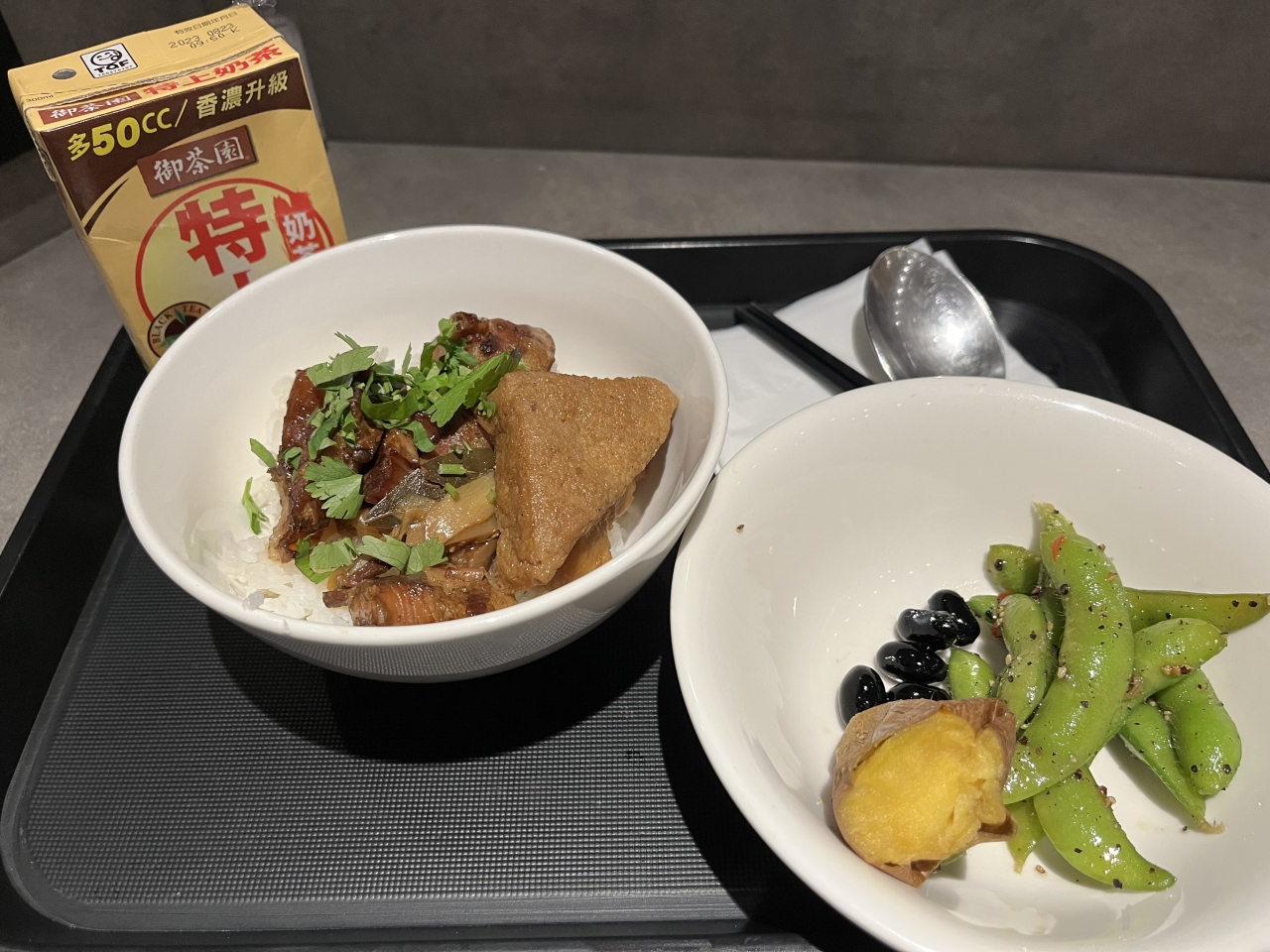 ローカルっぽいホットミールを作ってくれるコーナーがあり、ルーロー飯風のメニューをオーダーしましたが、お味は普通かな。