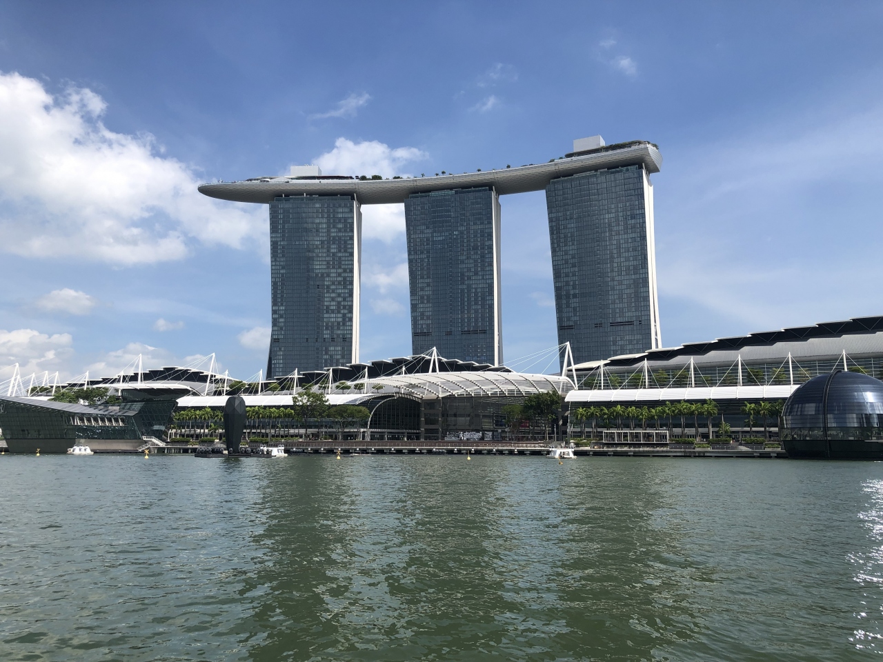 サンズ、マーライオン、ガーデンズバイザベイ、シンガポールフライヤーなど、まわりに観光名所がたくさんあるシンガポールのマリーナです。