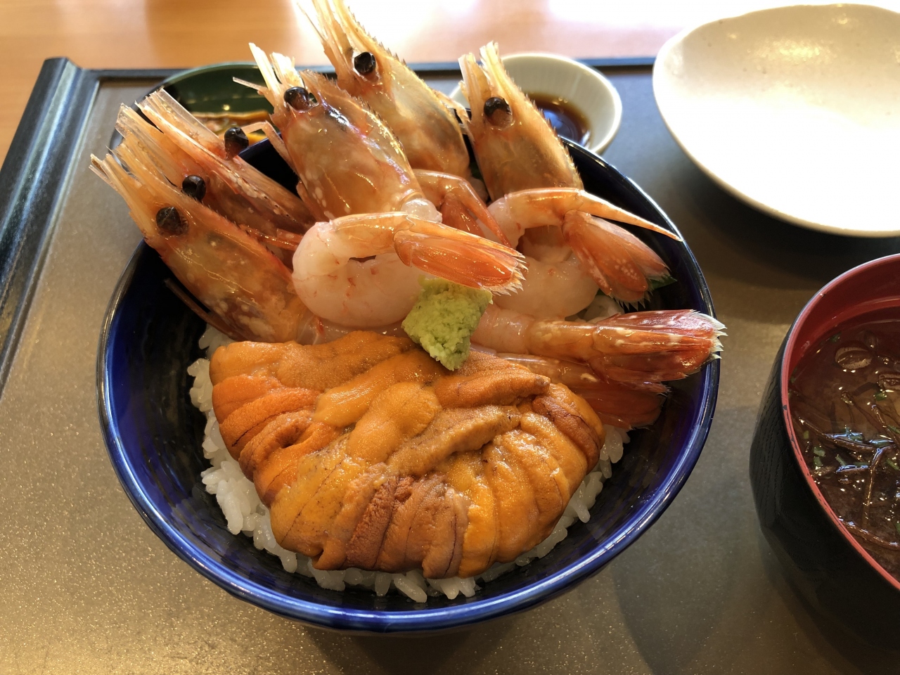 うに入り二色丼はイクラ・カニ・ボタンエビ・サーモンの中から好きなものを選んで作っていただきます。うにと同じくらいエビも好きなので迷わずボタンエビにしましたが、エビの味や香りが濃い分、うにを満喫できませんでした。(完全に好みの問題です笑)