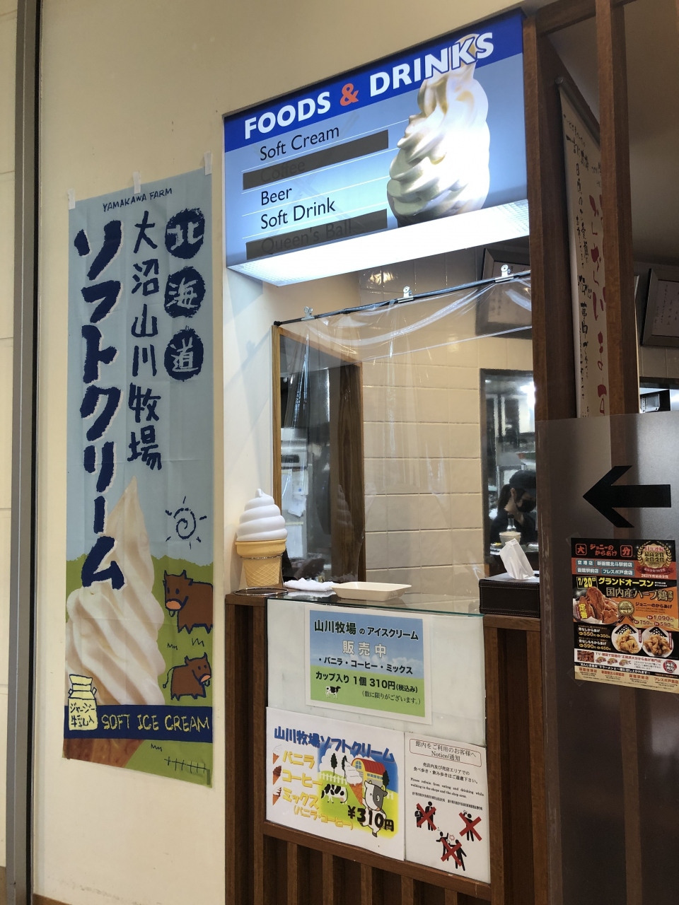 ラーメン屋さんの一角で、山川牧場のソフトクリームが売られています。何回も利用していますが、ラーメンはまだ食べたことがありません(笑)