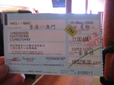 香港からマカオへ行く際は出国扱いになるので、パスポートが必要です。日本から香港に入国する際に書いた入国カードの控えも必要です。(パスポートに挟んでないと、出してって言います。)