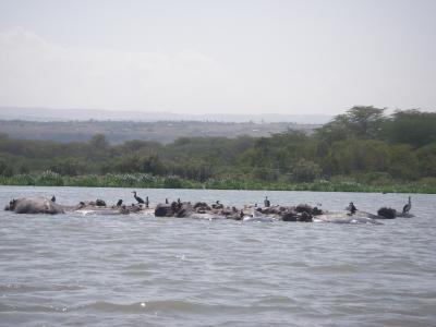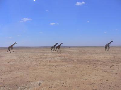 国立公園内に入って間もなく出会ったマサイキリンの団体。ここは雨季には湖...