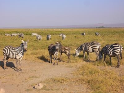 シマウマは沢山いました!中央の2頭が子供です。少し茶色っぽいのはメス。...