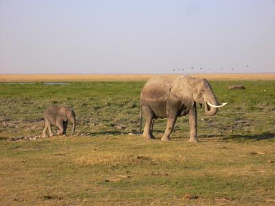 ゾウの親子です。最初は母親がサファリカーを警戒して、ずっとナーバスな様...