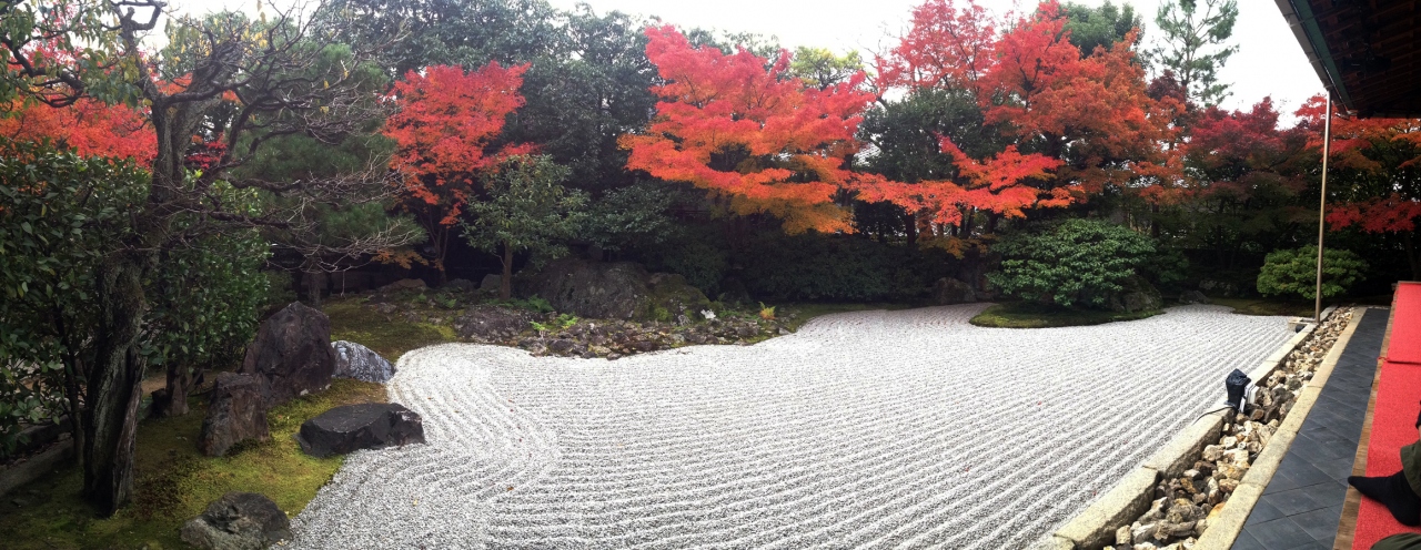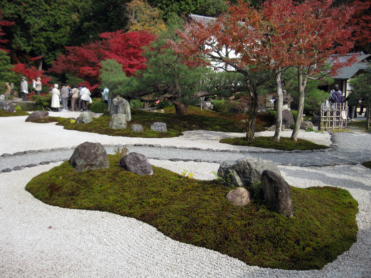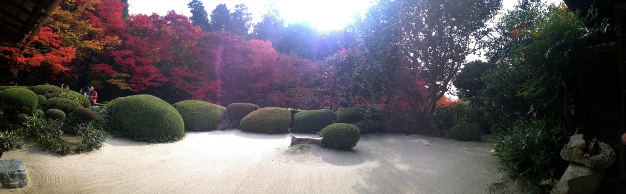 それぞれのコントラストが見事な庭園でしたが、紅葉の名所であったため座敷にあふれんばかりの観光客の喧騒が鳴り止むことはありませんでした。