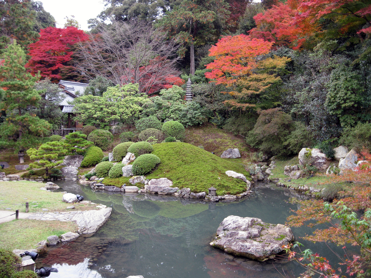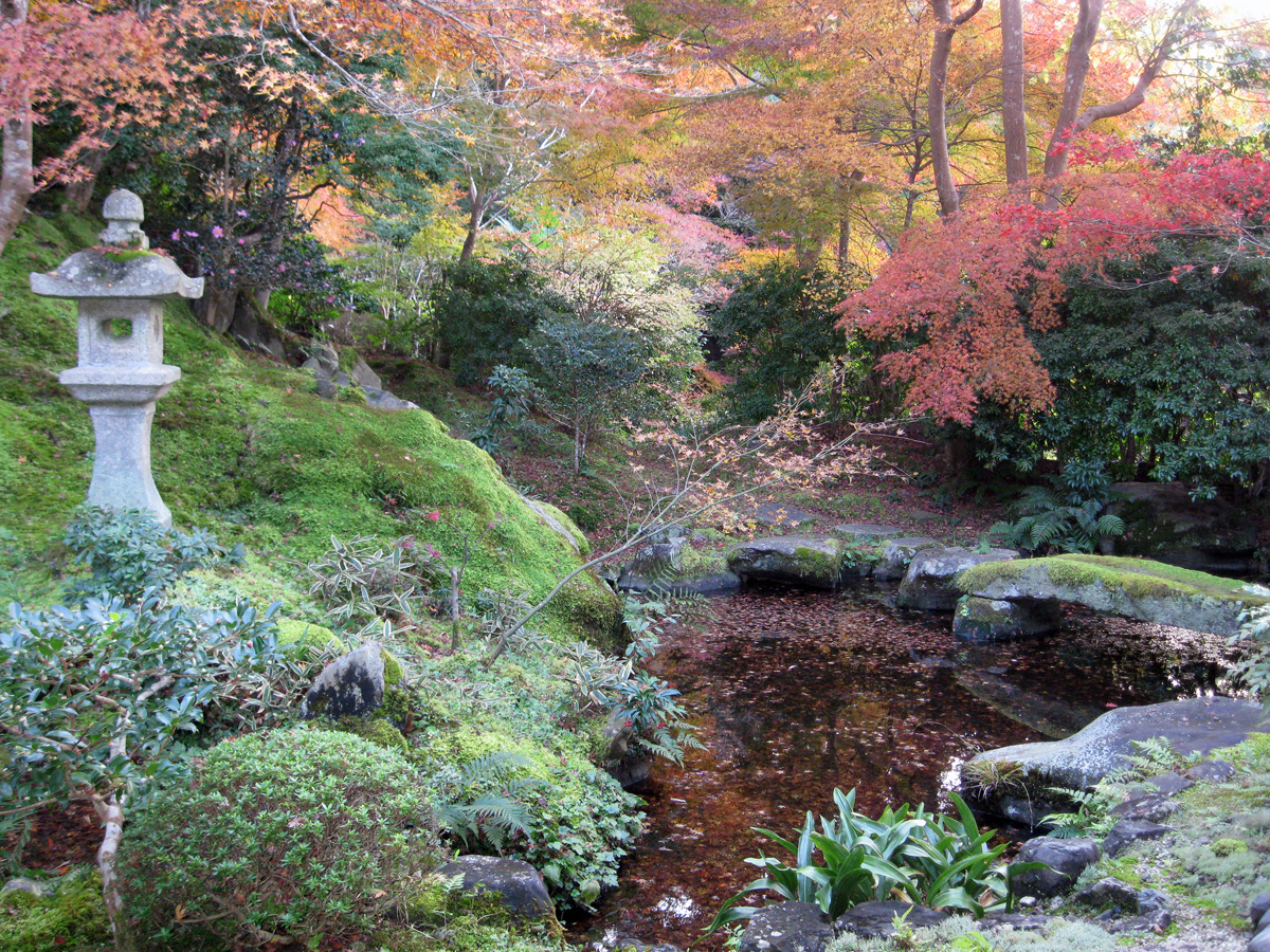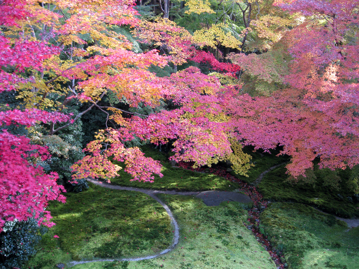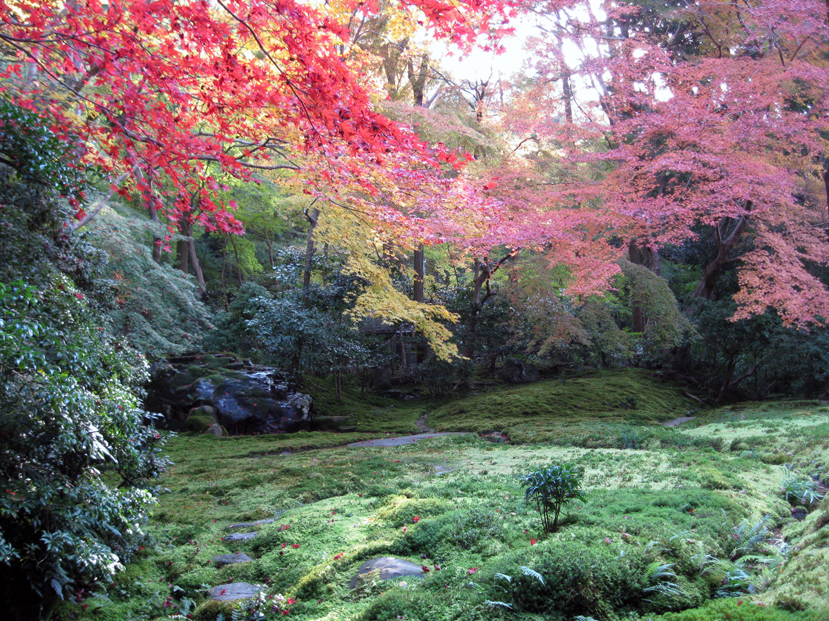 紅葉と青苔のコントラストが見事な「瑠璃の庭」と、天にかけのぼる龍を表したといわれる「臥龍の庭」があります。
