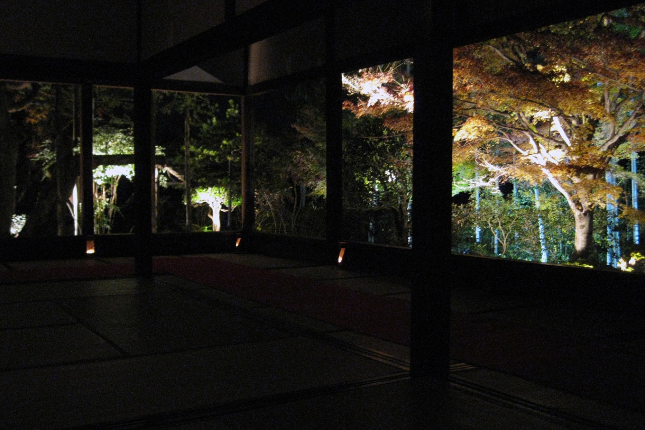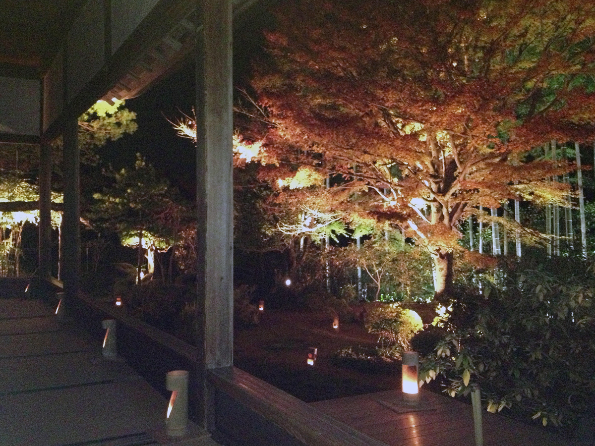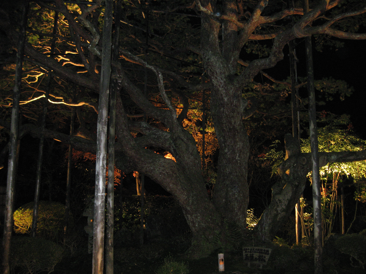 ライトアップされた「額縁庭園」や五葉の松は昼間とは違って幻想的な趣でした。