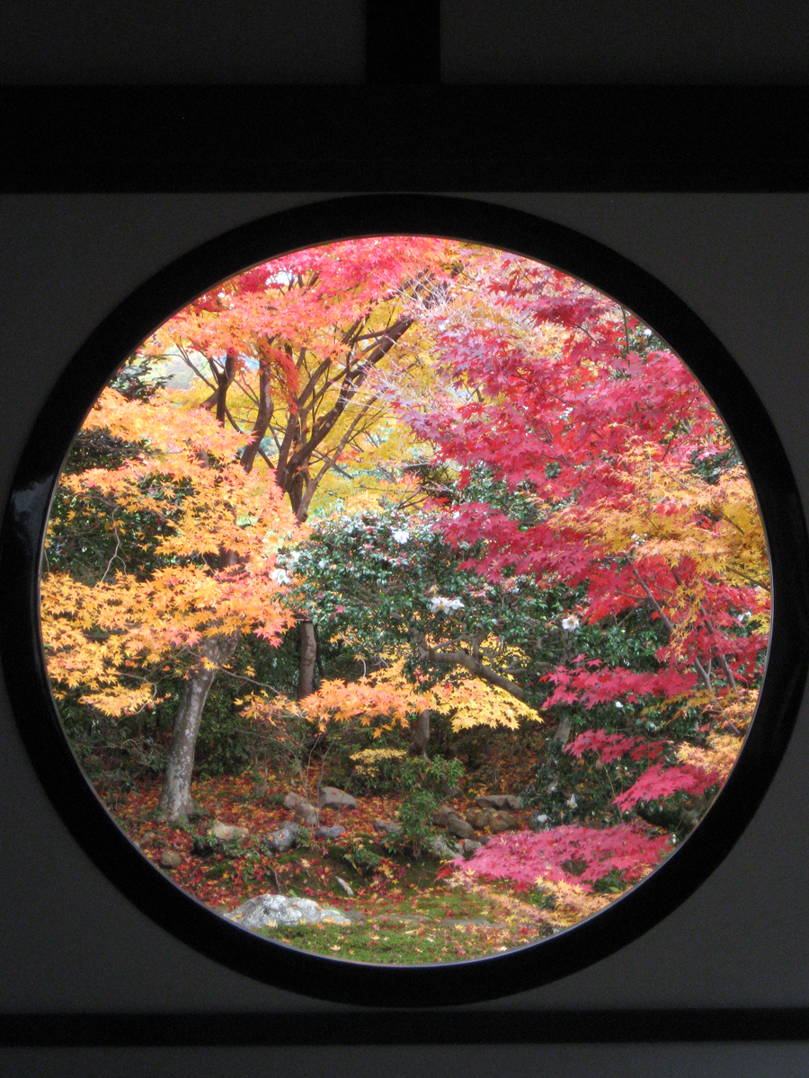 本堂にある「禅と円通」の心を表した丸窓の「悟りの窓」と「人間の生涯」を象徴した角窓の「迷いの窓」が有名ですが、紅葉シーズンでしたので窓の前には常に観光客で混雑していました。