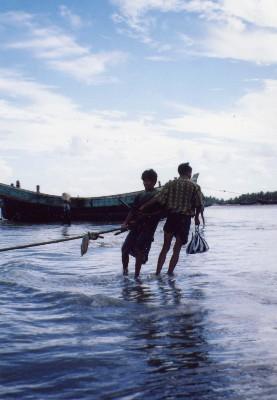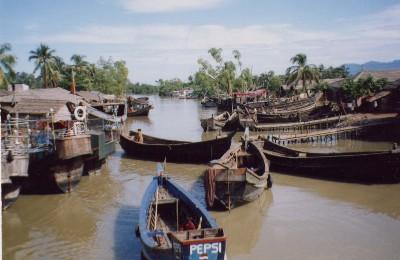 テクナフの港。ここから船に乗ってセントマーティンへいく。ナフ川に出ると...