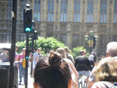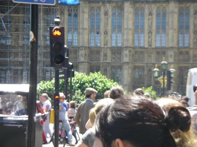 青になりました。向こう側のビックベンは工事用のシートで囲われていました...