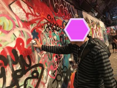 ツアー参加者が落書きできるように、トリスタンがスプレーペンキを用意して...