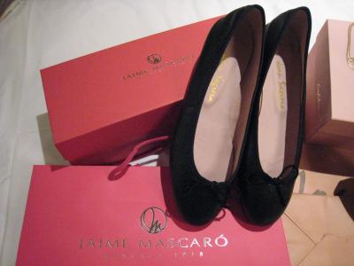 最近日本のデパートのインポートコーナーやセレクトショップでたまに見かけるハイメ・マスカロの靴。その専門店がバルセロナのcorsega通り沿い、ランブラ・デ・カタルーニャ通りと交わる辺り付近で偶然発見しました。普通の靴屋さんでも扱いはありましたが、さすがに専門店は種類も豊富で、お揃いのバッグなんかもありました。値段はバレエシューズで100ユーロくらいから、パンプスで130ユーロくらいからと、日本の半額くらいでした。クレジットカードも使え、免税手続きも出来ました。デザインよし、はき心地最高だけど日本ではチョット手が出ないここの靴、本場なら安くてサイズも選び放題ですよ。私は2日間で2回通って結局4足買っちゃった!