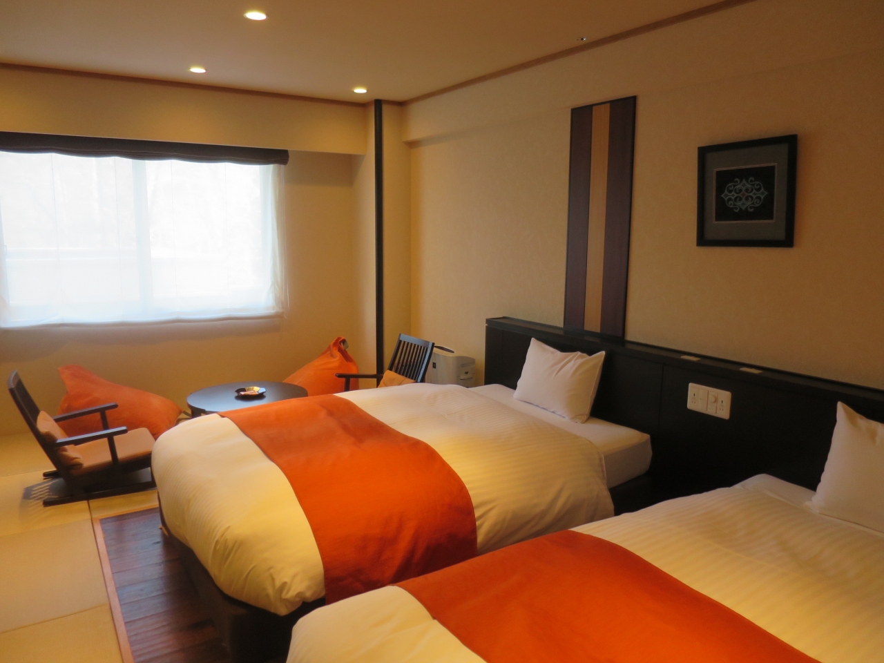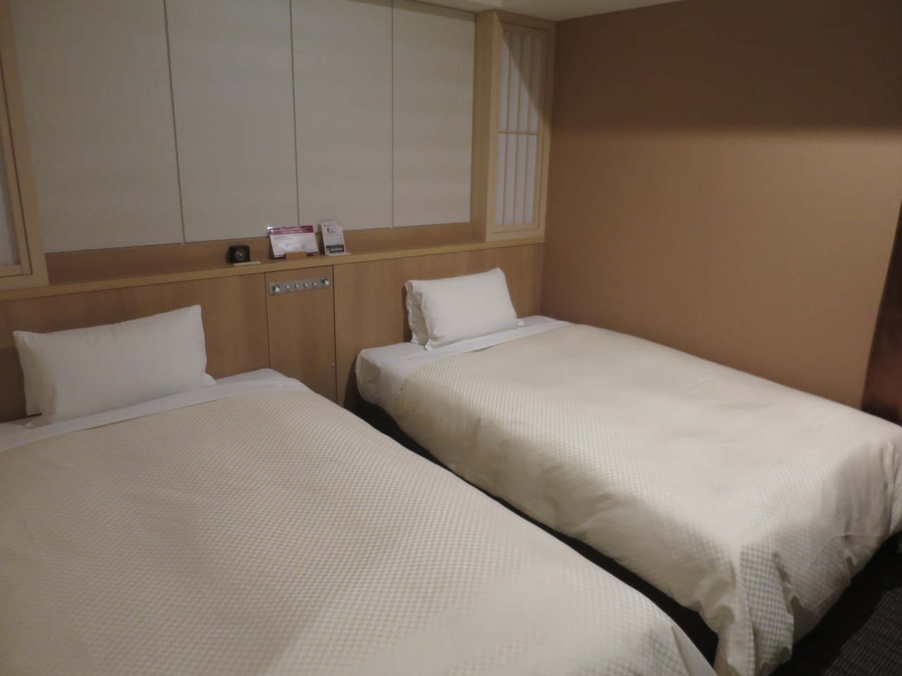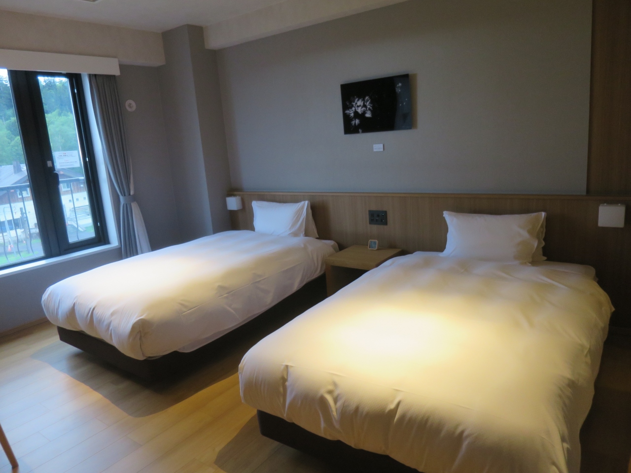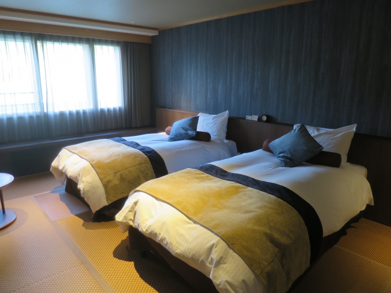特に説明はありませんでしたが、少し広めの和モダンツインにグレードアップしてくれたようです。