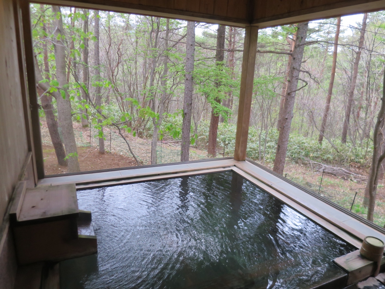 早朝から敷地内の散策路を歩くのはとても気持ちがよく、野天風呂2か所をめぐったものの、野趣あふれ過ぎていて、私には大浴場の方が気持ちよく入浴できました。