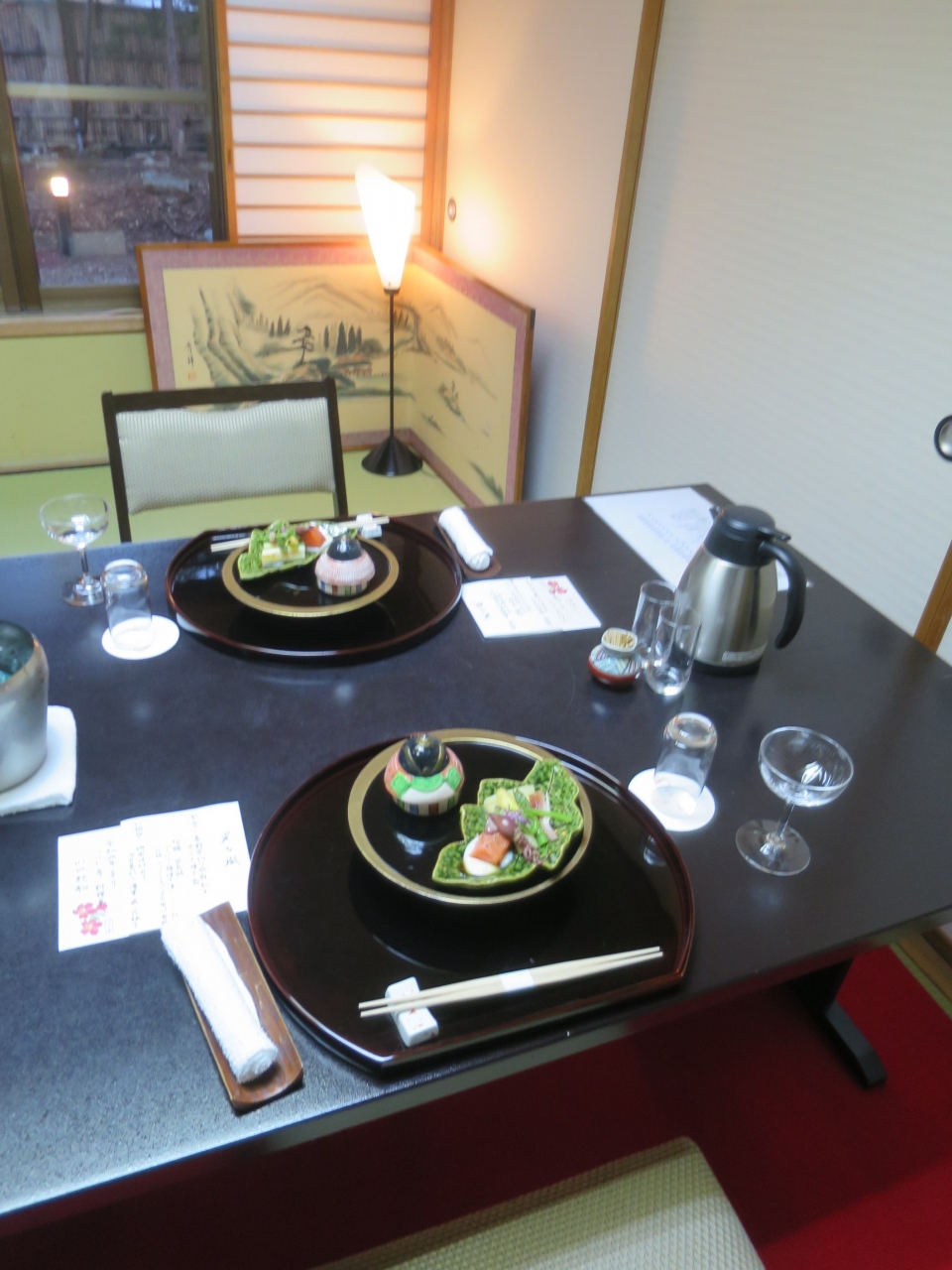 貸切風呂からサルが見えたことに興奮しつつ、夕食会場へ。