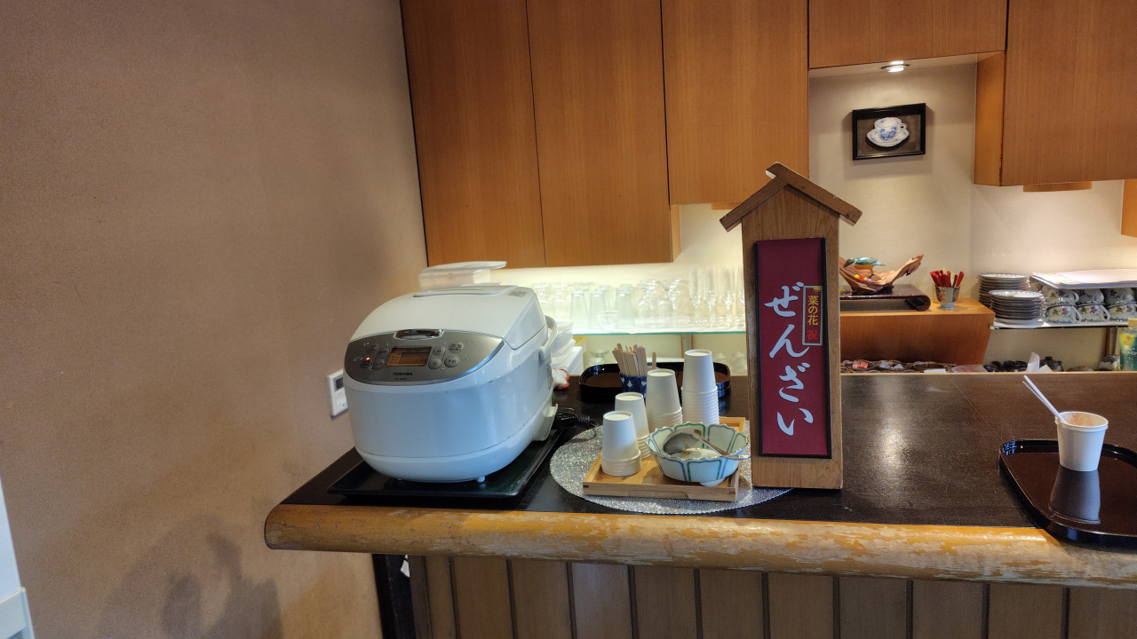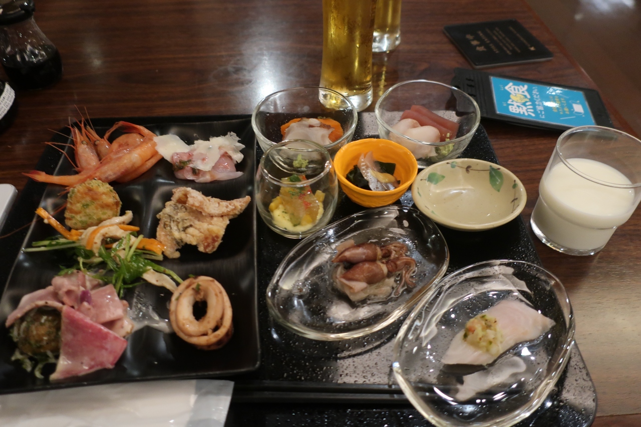 小皿に分けられた料理をとってくるスタイルですが、お雑煮、おしるこ、天ぷらはスタッフがいかがですかと声をかけながら席をまわってくれました。- 旅行時期