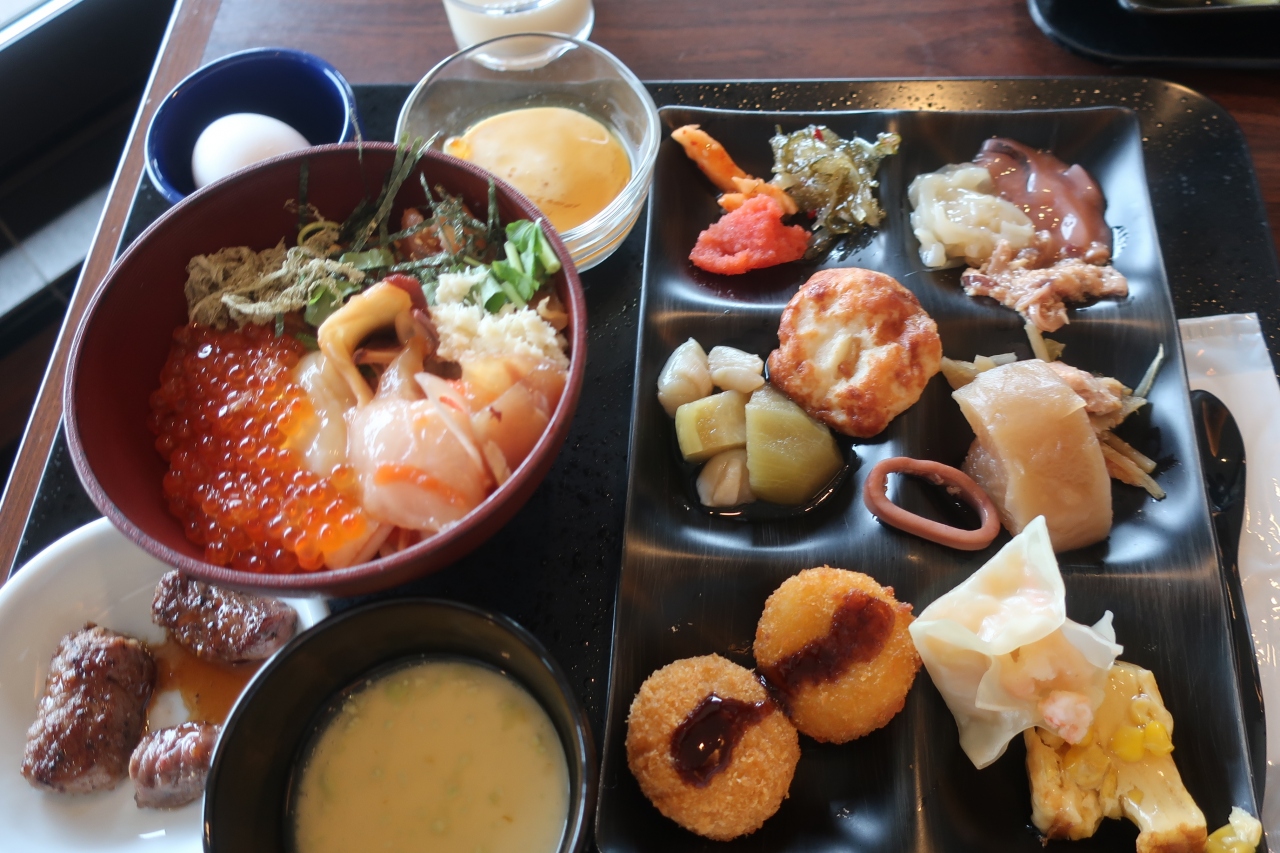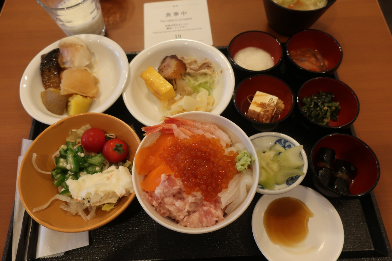 「四季折々の旬な北海道産の食材(お米や野菜他)やお料理(海鮮丼、カスべなど)を中心に和洋約50種をビュッフェにてご提供」とのことですが、内容・品質はそれなりというか、なんというか・・・- 旅行時期