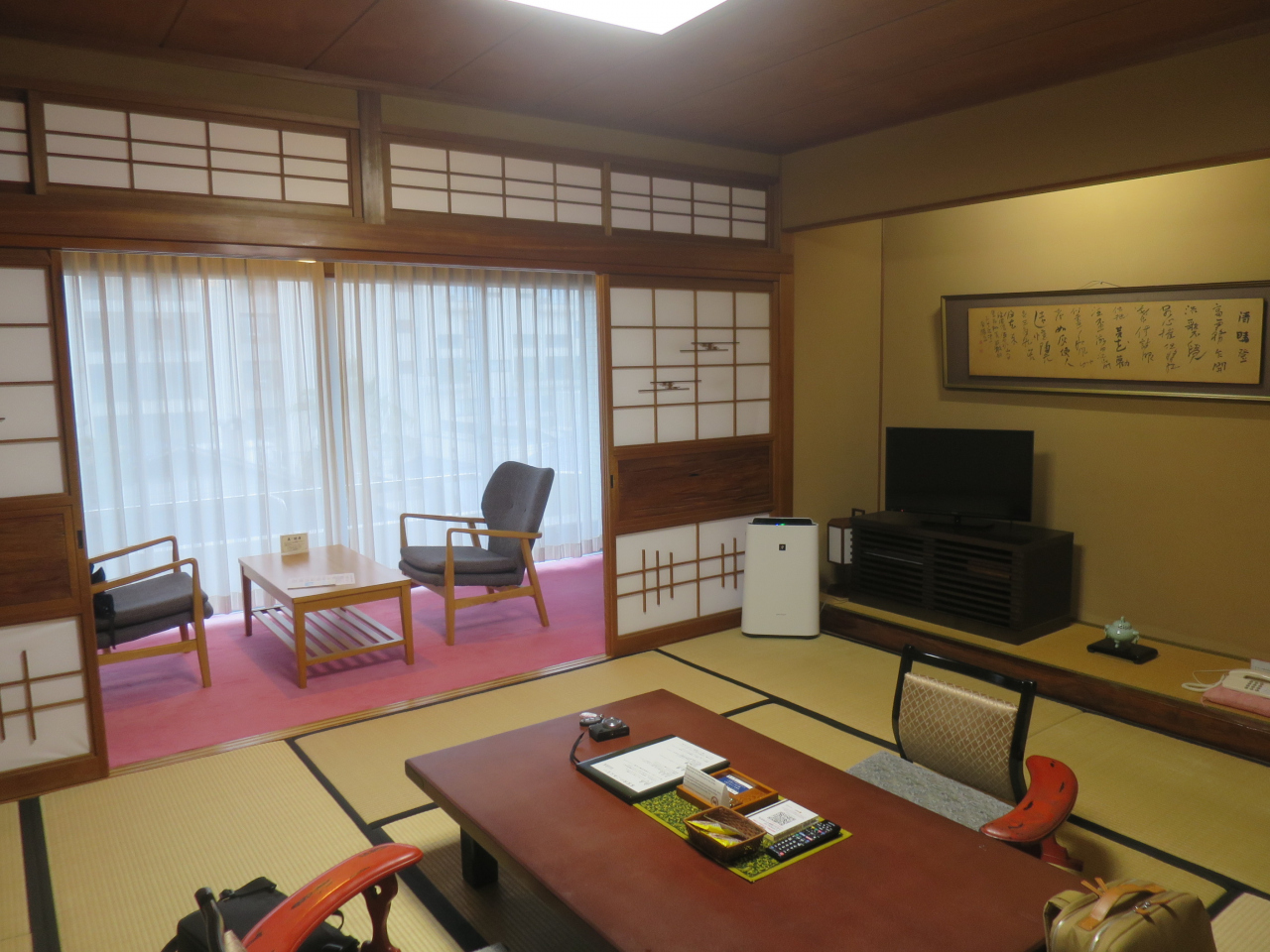 休前日泊で最も安価な10畳和室の基本プラン30,800円(入湯税別)でしたが、12畳のお部屋にグレードアップしていただきました。