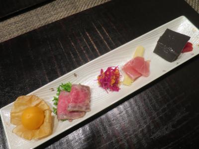 米沢ジャックスブルワリーとコラボした「すみれセッションIPA」で乾杯したあとは、嘉ピノシャルドネ4,180円を飲みつつ、米沢牛づくしの創作懐石料理をいただいたわけなのですが・・・