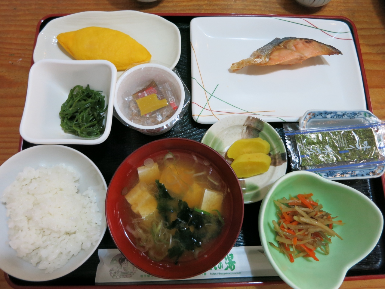 そして、翌朝。朝食もお品書きが用意されてました。ただ、BGMはジャズじゃなくてもっと爽やかな音楽でもいいような…(^^;