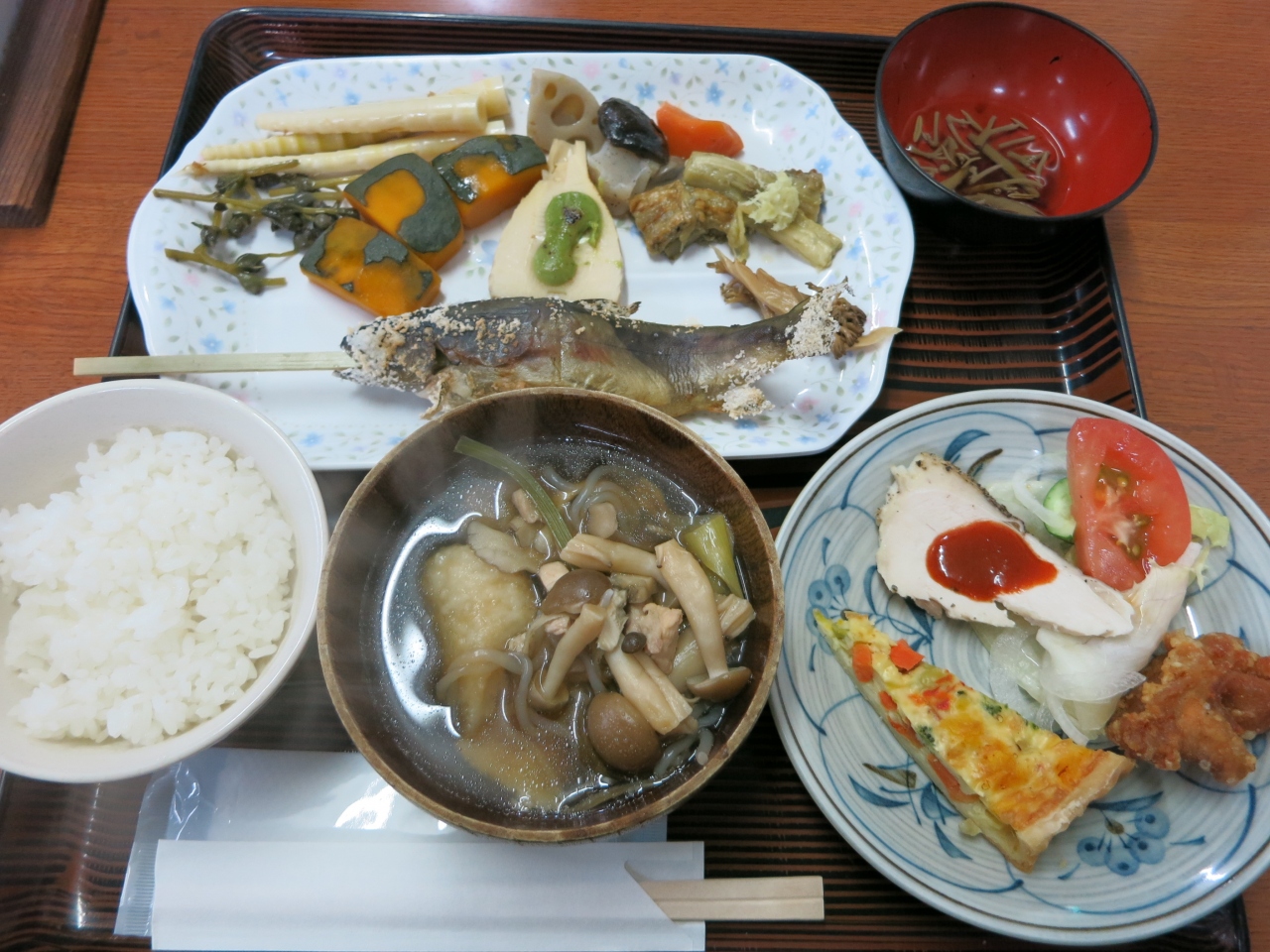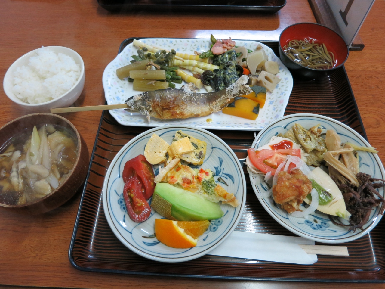 まさに地産地消!地元でとれた新鮮な素材を活かした料理は滋味あふれるもので、どんな高級食材よりも贅沢な気持ちにさせてくれます。食器や盛り付けにも細かな心配りがされており、山の味覚を堪能しました。