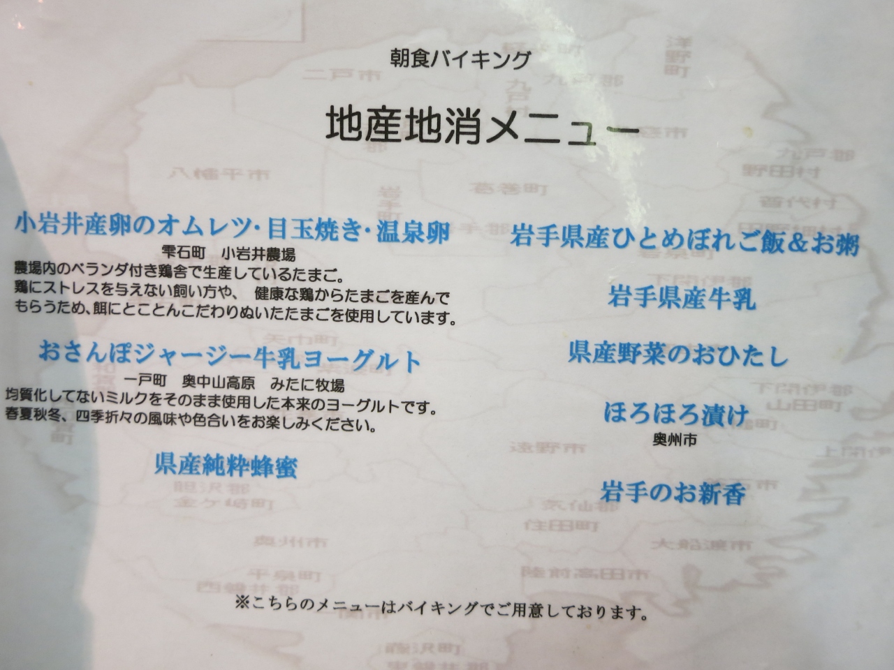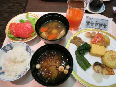 朝食ビュッフェは地産地消メニューで美味しくいただきました。