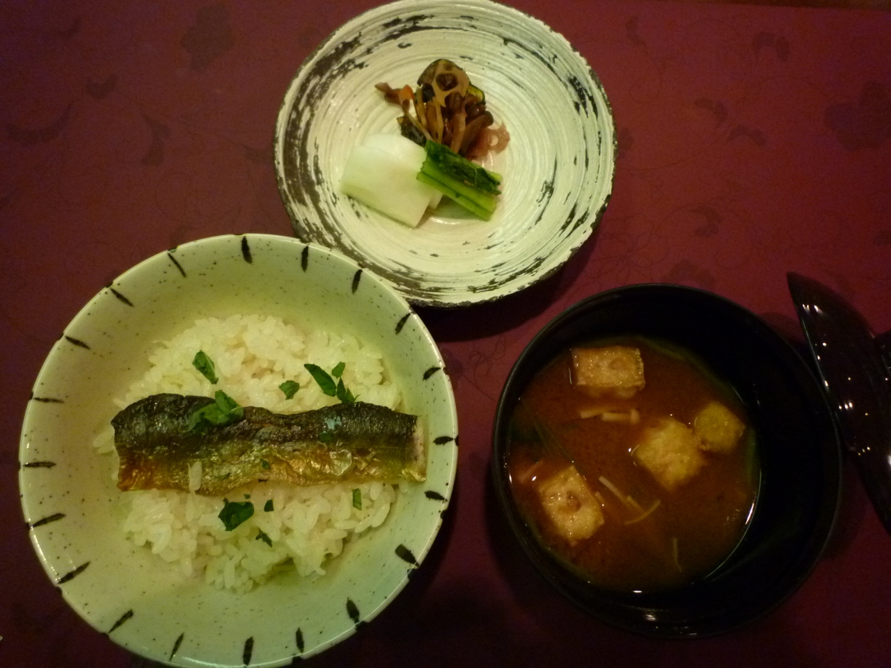 ・ご飯(若女将の実家で作ったコシヒカリ)と味噌汁(自家製味噌使用)