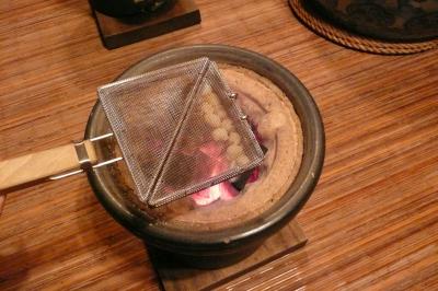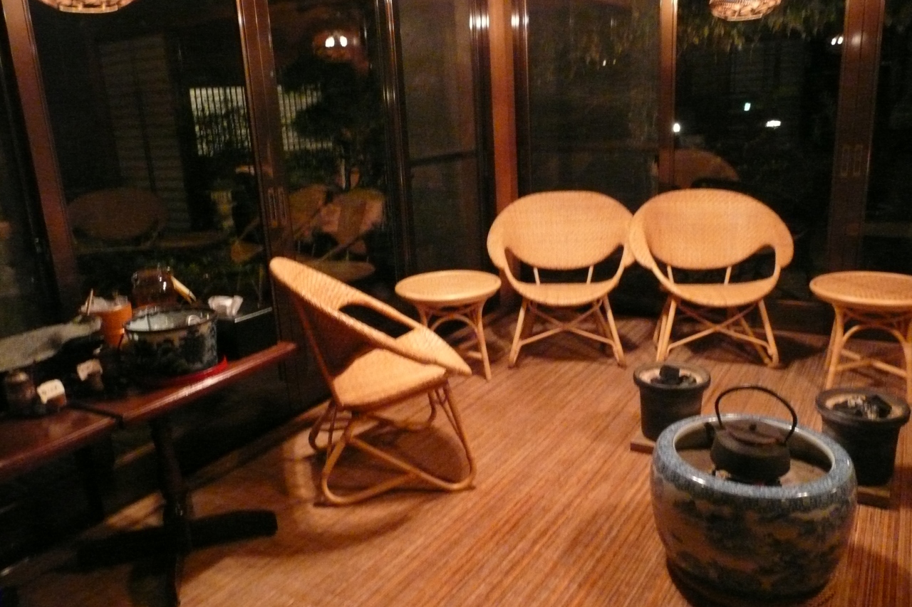 夕方5時にチェックインして、好きな浴衣を選んでから露天風呂と内湯をはしご。貸切風呂というのは、気をつかわずに寛げるのでいいですね~。湯上りに利き酒コーナーのお酒と奥利根の冷たいお水、クロモジ茶を楽しんだ後、夕食は部屋ごとに区切られたダイニングでいただきます。おとした照明とBGMのジャズが、おしゃれな居酒屋さんみたい。