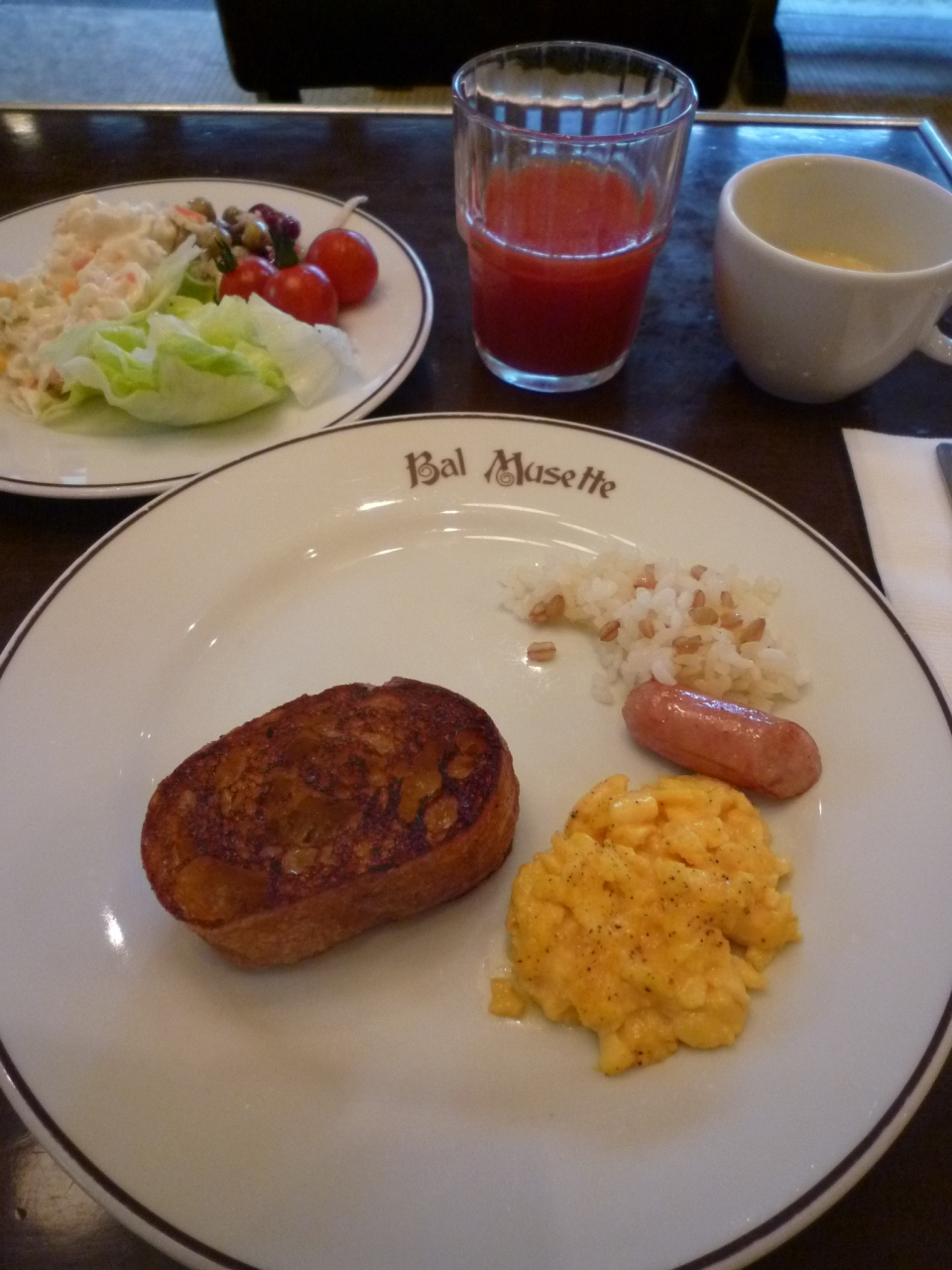 トマトなのに赤くない透明なスープです。どうやって作るのか不思議ですね〜。ずんちは差し替えてよかったといたく気に入った様子。