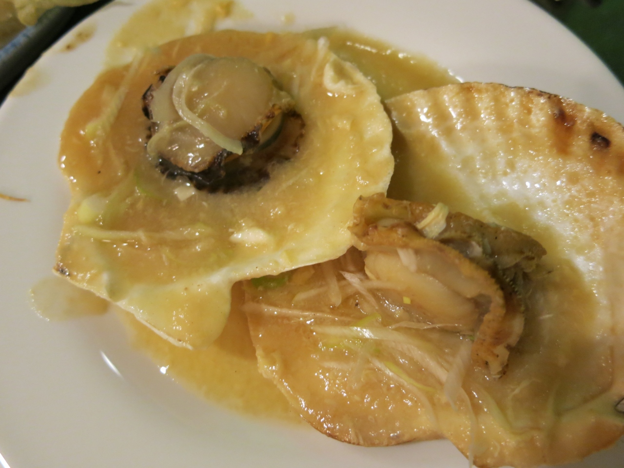カリカリの薄いパンにレアなホタテがサンドされてます。チーズとソースが濃厚でうまい。手前の白いのはカリフラワーのスライス。