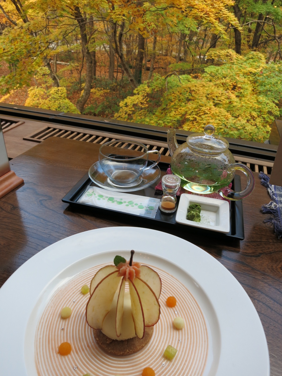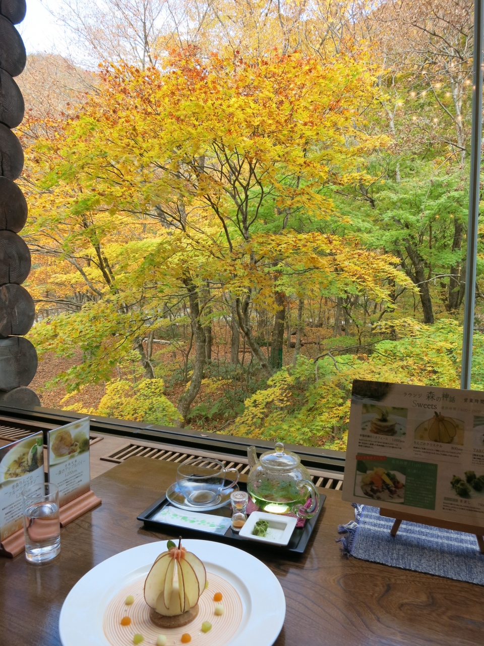 待っている間も大きな窓から美しく色づいた木々をながめているだけで、幸せな気持ちになれますね~