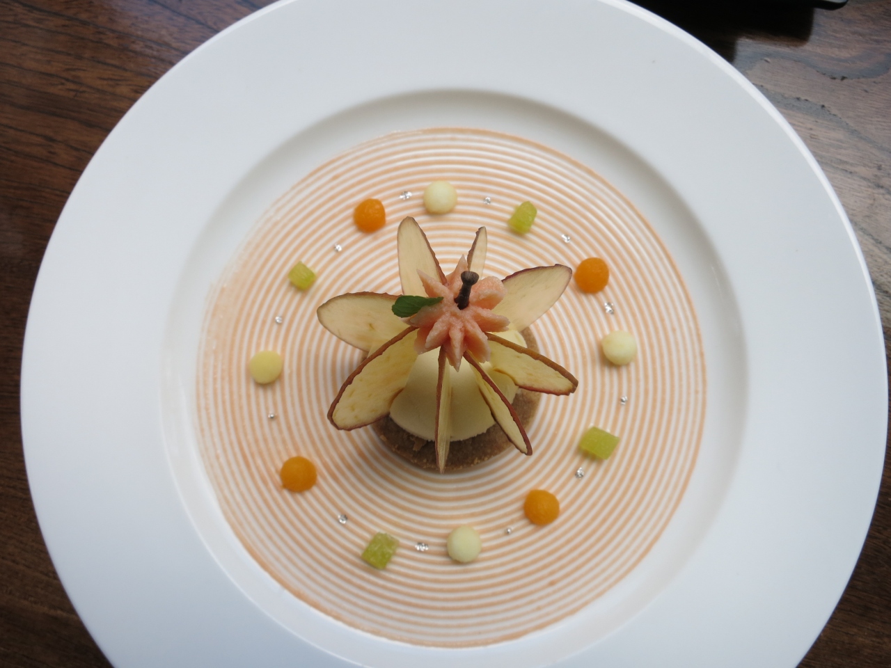 りんごチップ、アイスの下のクッキー、まわりのクリーム