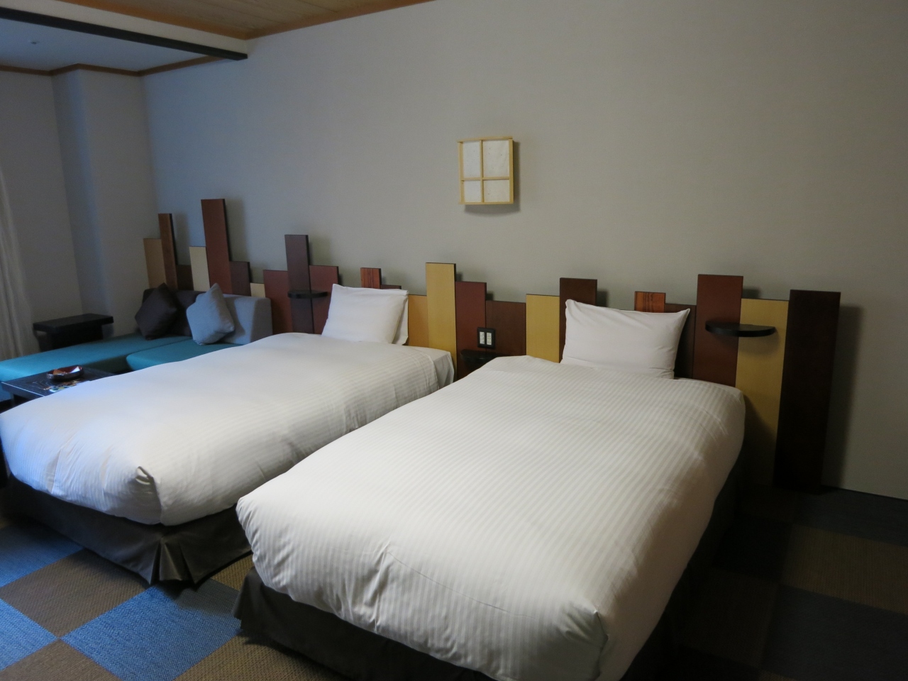 チェックインは15時から。車をあずけて、すぐにお部屋に案内されます。どの従業員の方も丁寧な接客です。アロマテラピー(60分12,600円)の予約を15時半にいれておいたので、あたくしはすぐにアロマルームへ。ずんちはその間に4つのお風呂めぐりをして部屋でビール(693円)をあけてました。