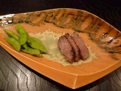 さんざん迷って、つれのずんちは毛豆&大吟醸、あたくしはリンゴシャーベット&嶽きみをチョイス。