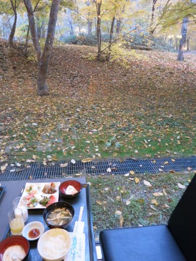 朝食は、4階のダイニング「四季」で7時半から10時まで。和洋どちらにするかは、夕食のあとにきいてくれましたが、2人とも和食にしました。