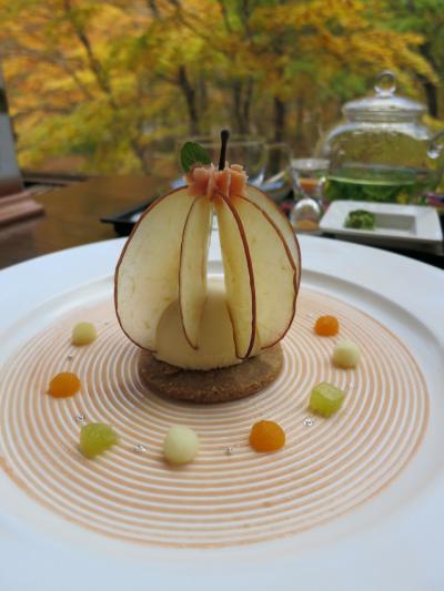 フレッシュミントのハーブティーと「りんごのクリスタル」800円を注文。