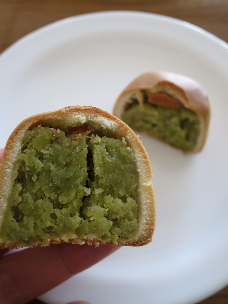 緑豆糕は、落雁ほどかたくないし、ぱさぱさしてません。