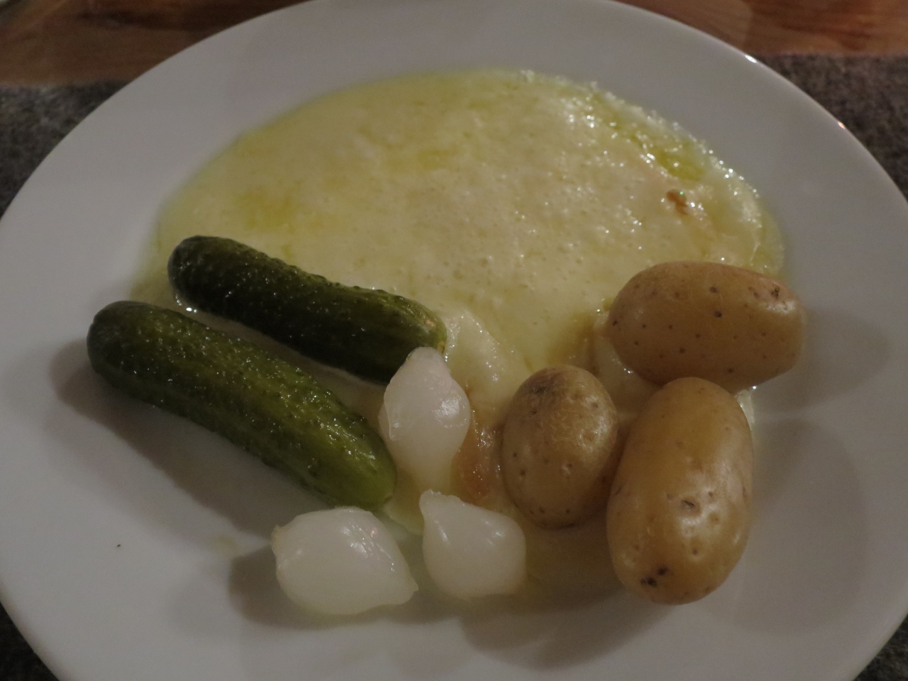 2人でモッツァレラ22CHF(決済時のレートで約2,670円。以下同じ)、ラクレット11CHF(1,330円)と名物料理のラム炭火焼き52CHF(6,310円)をとりあえず注文。