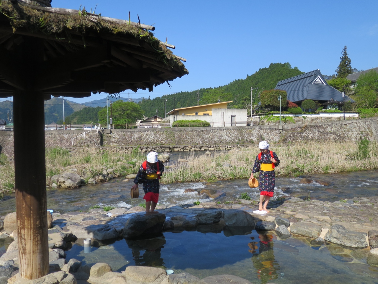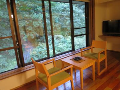 源泉から1階の川沿いにお湯を引いてきた貸切風呂の「川の湯」も開放感があって、気持ちよかった~。