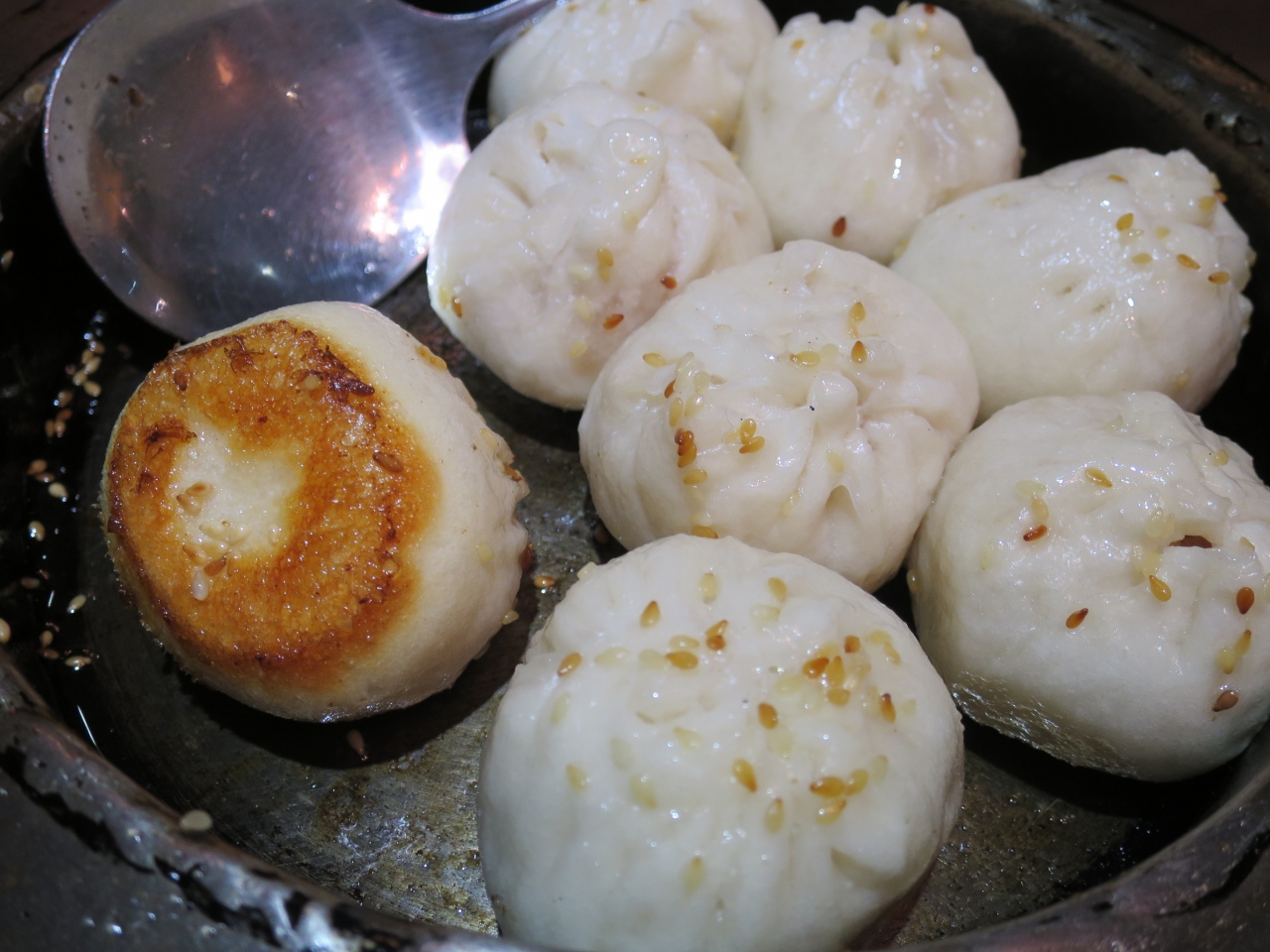 宿泊したシーザーパークホテル台北の裏側すぐの道路に面した蒸し焼き肉まんのお店。