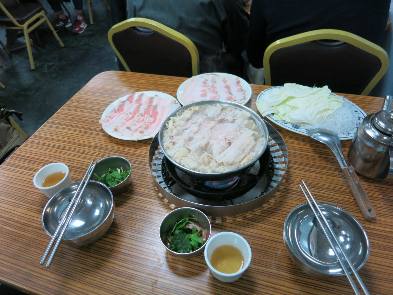 活気に満ちた町の食堂という雰囲気で、運よく2人掛けの小さなテーブルが空いていました。