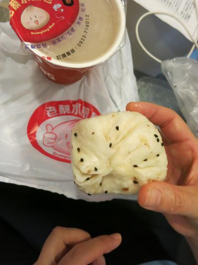 飲み物は、豆漿、米漿、紅茶などから豆漿紅茶20元を選んで、65元の朝ごはん。